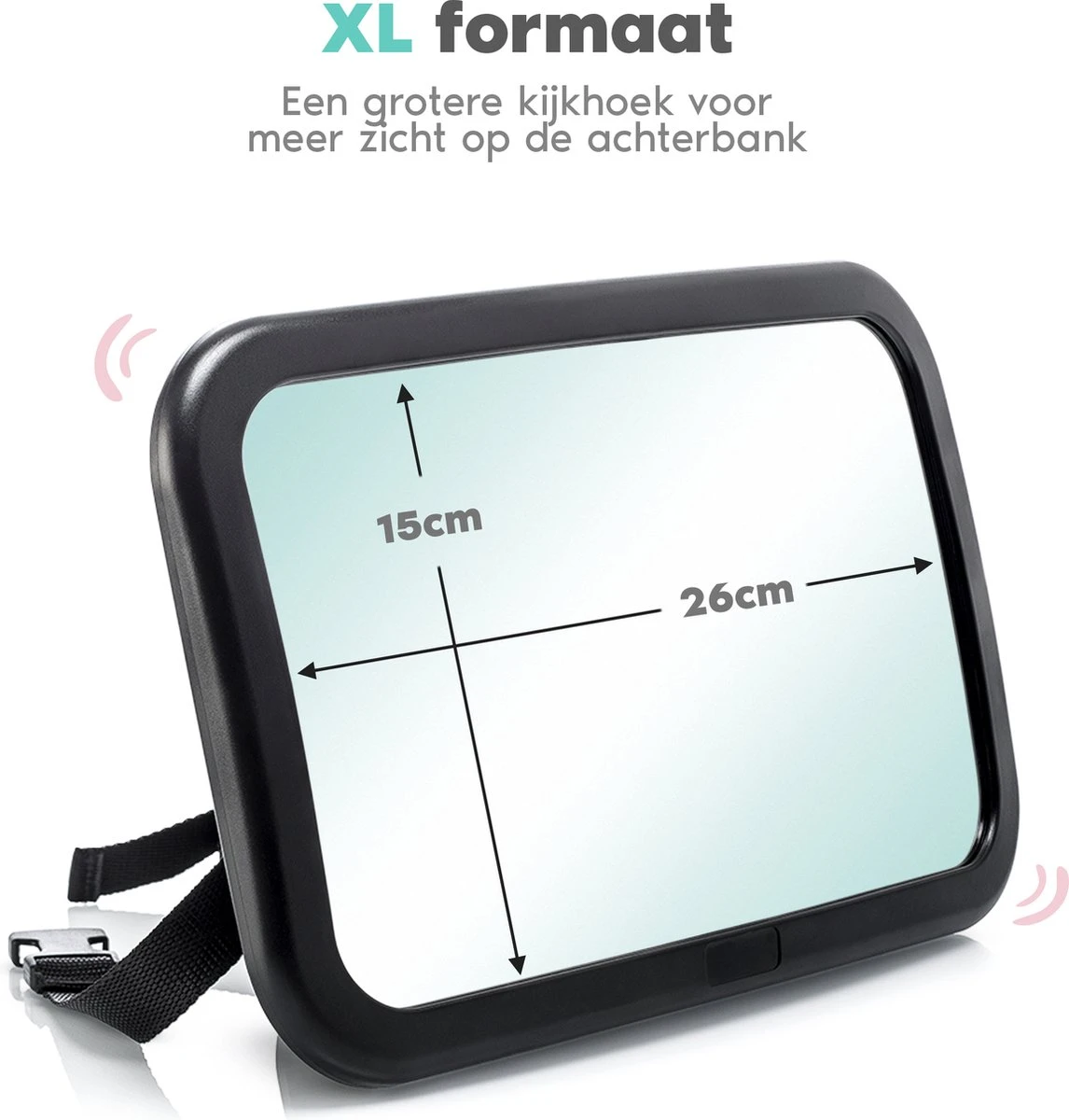 De babyspiegel bevestig je eenvoudig met verstelbare banden op de hoofdsteun van de achterbank. Zo kan de baby naar zichzelf kijken โ en zich vermaken โ terwijl jij ook perfect zicht hebt op je kindje. Een fijne oplossing voor wanneer je je baby achterwaarts in de auto vervoert.