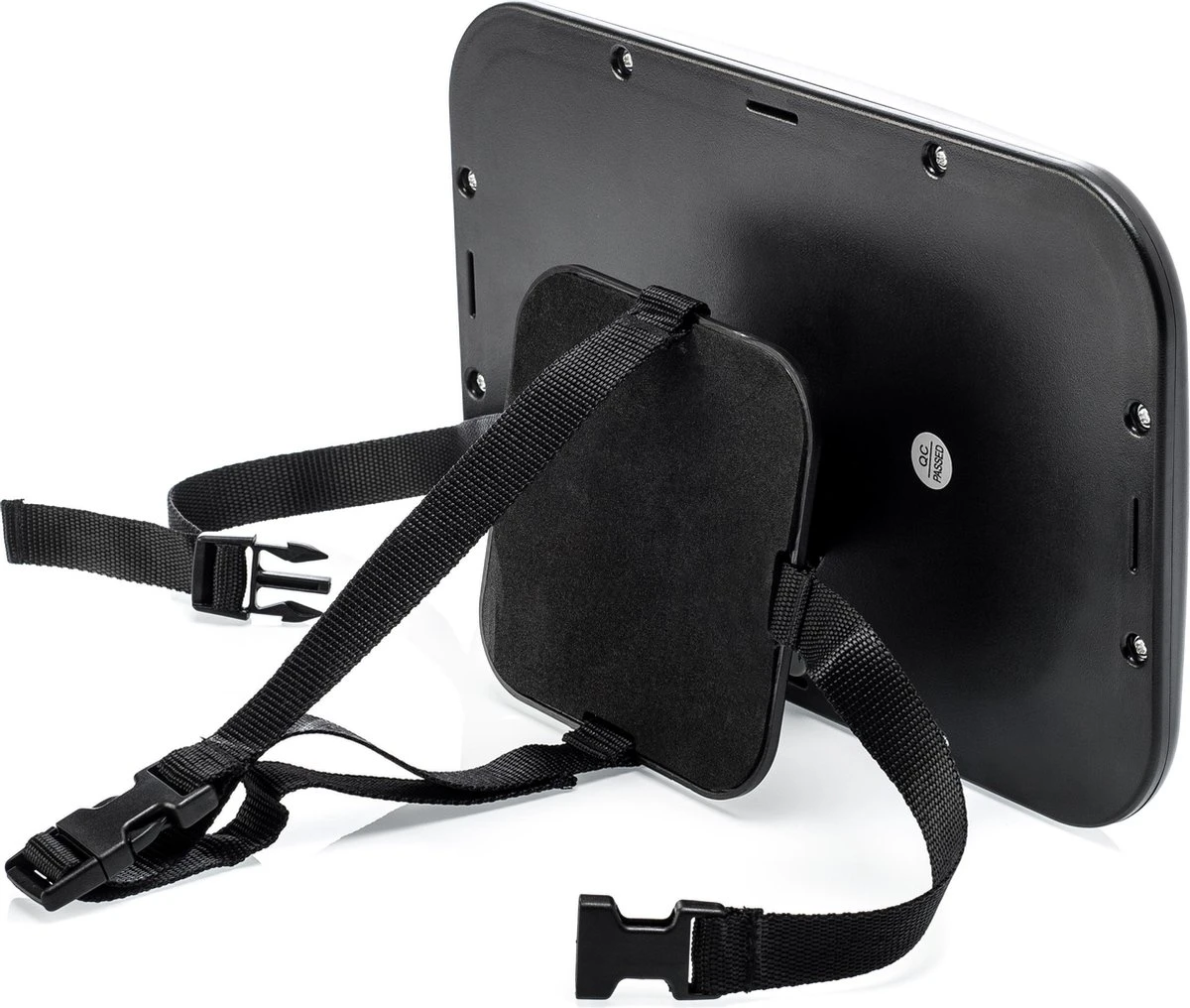 De spiegel blijft stevig zitten tijdens het rijden door 2 verstelbare banden. In het geval van een auto-ongeluk hoef je niet bang te zijn dat de spiegel schade toebrengt. Het glas is namelijk van onbreekbaar materiaal dat niet versplintert. Ook heeft de babyspiegel een sterk plastic frame.