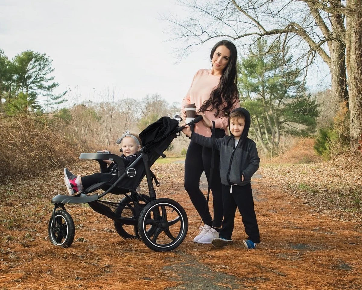 Het voorwiel van 40 cm draait makkelijk mee bij het besturen van de kinderwagen. Het wiel kan worden vergrendeld, zodat de wagen stabieler rijdt tijdens het wandelen of joggen. Ook zijn de achterwielen van 53 cm voorzien van een parkeerrem, zodat je de kinderwagen veilig op zijn plaats kan houden.