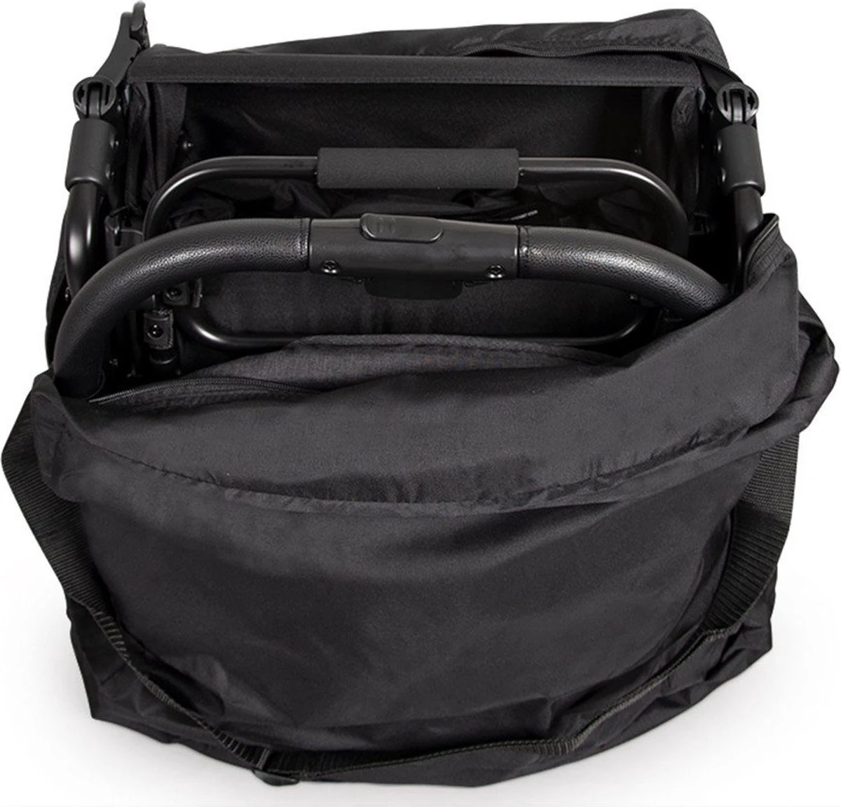 Deze zwarte draagtas met rits is speciaal op maat gemaakt voor de Moreno buggy van Baninni. De Moreno buggy is compact inklapbaar en kan makkelijk gedragen worden in deze handige transporttas.