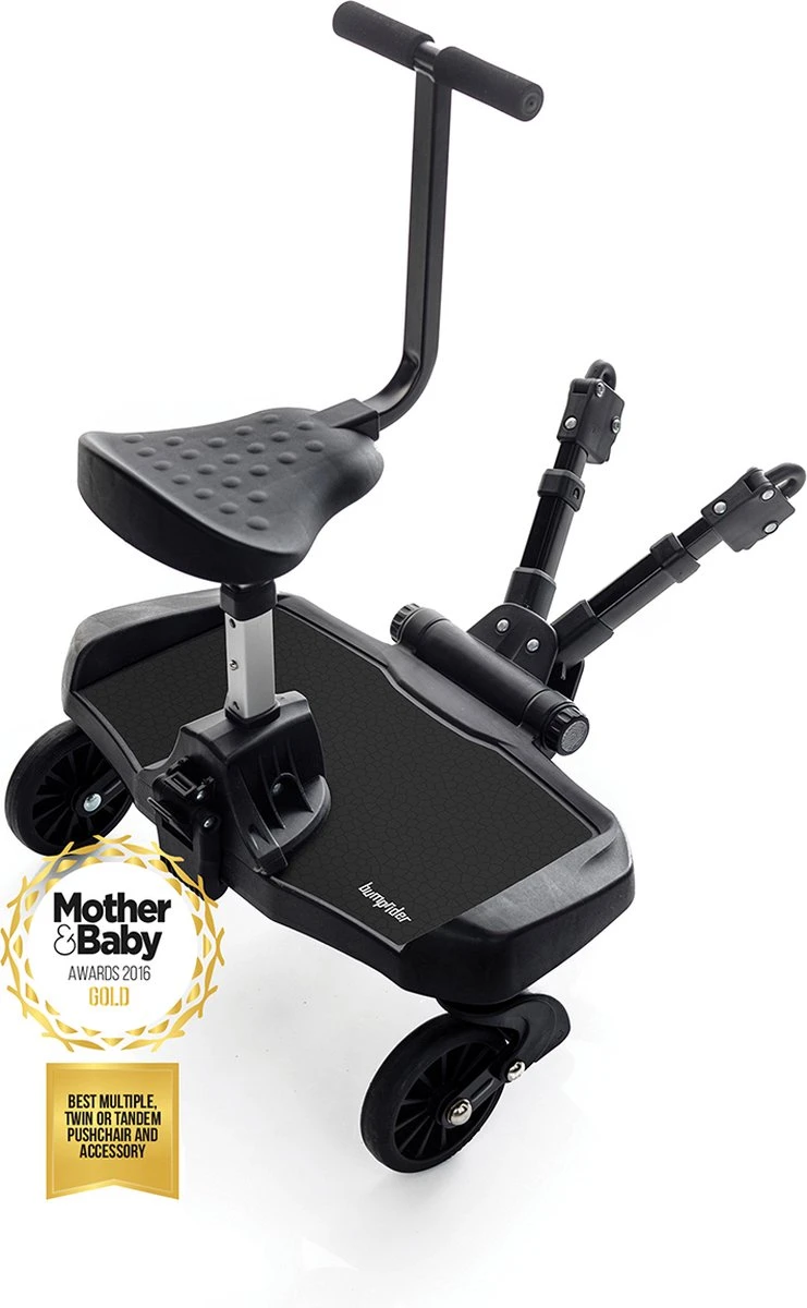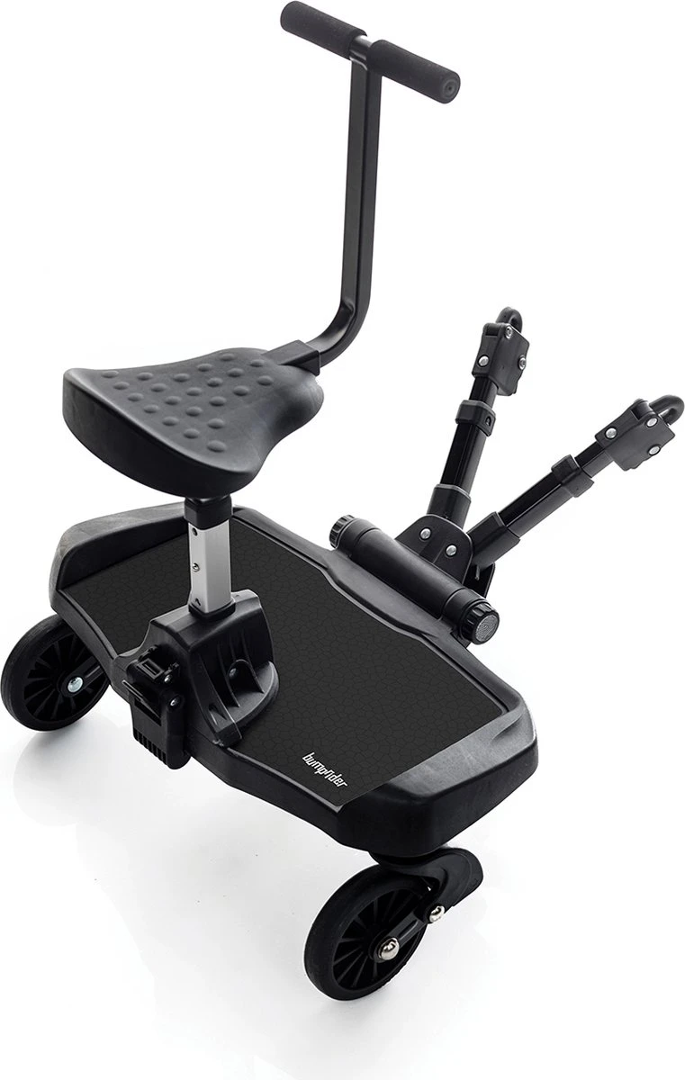 Bumprider Plus Sit Up Meerijdplankje Black Met het Bumprider meerijdplankje heeft je kindje een prettige en aangename wandeling, als het veilig tussen jou en de wandelwagen staat of zit. De universele Bumprider is ideaal voor mensen die meerdere kinderen hebben, waarvan het ene kind op het meerijdplankje zit of staat en het andere kind in de kinderwagen zit. Het meerijdplankje beschikt over een uitgebalanceerde vering dat voor stabiliteit en comfort zorgt tijdens de wandeling. De Bumprider is eenvoudig en snel te monteren zonder gereedschap en met een extra montageset kan er worden gewisseld tussen twee verschillende kinderwagens. Eigenschappen – Geschikt van 2 tot 5 jaar – Past op alle kinderwagens die geschikt zijn voor een meerijdplankje – Uitgebalanceerde vering – Gemaakt van PVC en metaal – Je kindje kan zowel zitten als staan – Snelle montage zonder gereedschap – Belastbaar tot 20 kg – Extra montageset voor 2e buggy of kinderwagen apart verkrijgbaar