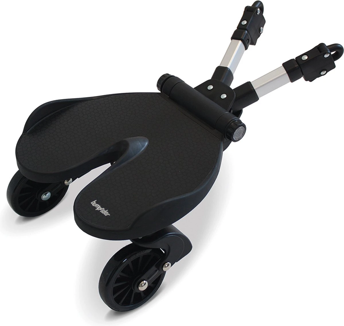 De Bumprider is het meest universele meerijdplankje in zijn soort. Door de rubberen wieltjes geeft het extra meerijd comfort.