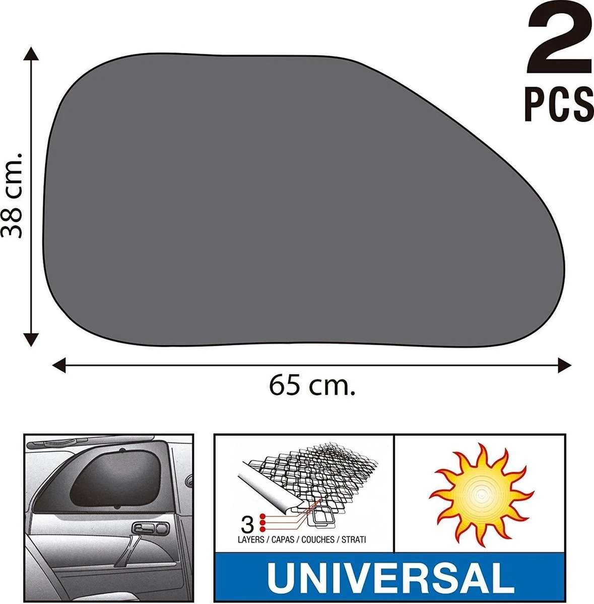 Car Plus Zonneschermen Zijruit 3-laags 38 X 65 Cm Zwart 2 Stuks