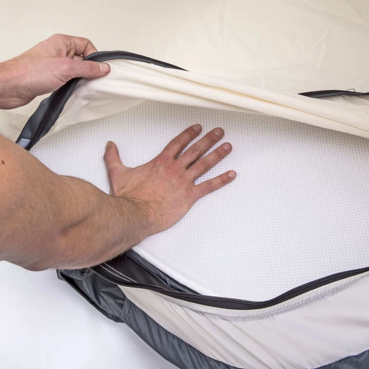Een ademend matras is essentieel voor ouderen, maar ook voor baby’s en peuters! Dit matras heeft een unieke 3D X-structuur en een elastisch honingraatvormig textiel met hoge dichtheid. Het 3D-matras biedt kinderen stevige ondersteuning en stimuleert de gezonde botgroei van je baby. In tegenstelling tot gewone matrassen is het materiaal volledig lucht- en vochtdoorlatend. Uiteraard kan het gecombineerd worden met een DERYAN tent voor een veilige en gezonde slaapplaats, maar los gebruik is ook mogelijk.
