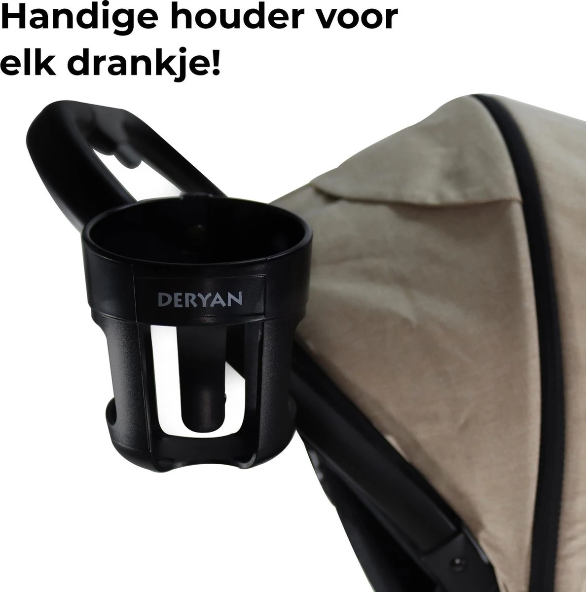 Genieten van je drankje tijdens het wandelen met je kind, of moet je de drinkfles van je kleine even kwijt? De Deryan XP bekerhouder maakt het makkelijk voor je!