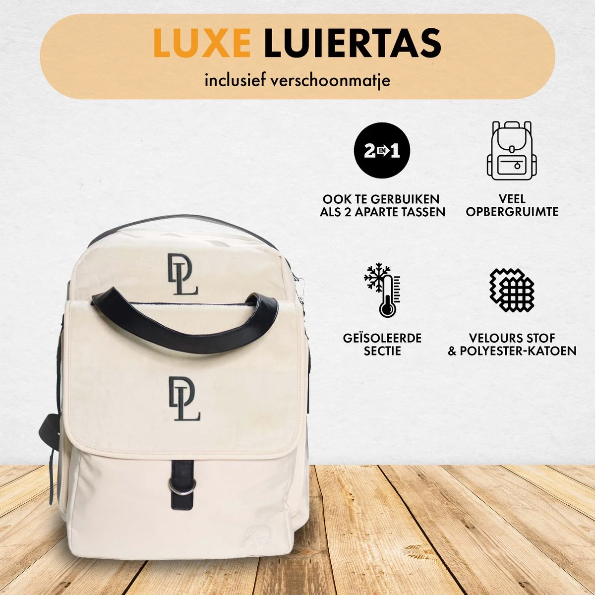 Met deze super handige luiertas ben je altijd klaar om op pad te gaan met jouw kindje(s). Zo berg je heel eenvoudig alle luiers, doekjes, slabbetjes, kleding en flessen op.