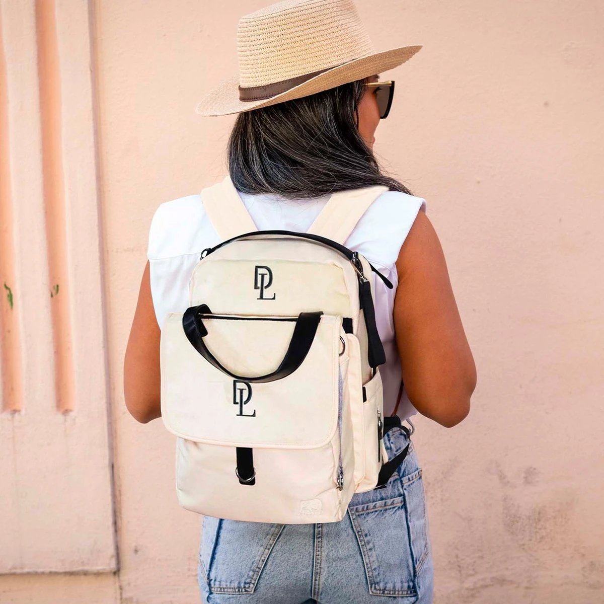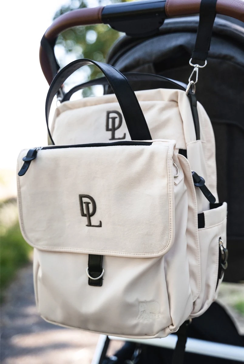 De stoere en stijlvolle tas van DERYAN bestaat uit drie delen. De grote rugtas is voorzien van verschillende opbergvakjes en is standaard uitgerust met een handig verschoonmatje. De tweede tas is door middel van ritsen bevestigd aan de voorkant van de rugtas en is te gebruiken als handtas. De voorzijde is gemaakt van zachte velours stof, wat deze tas een stijlvolle look geeft.