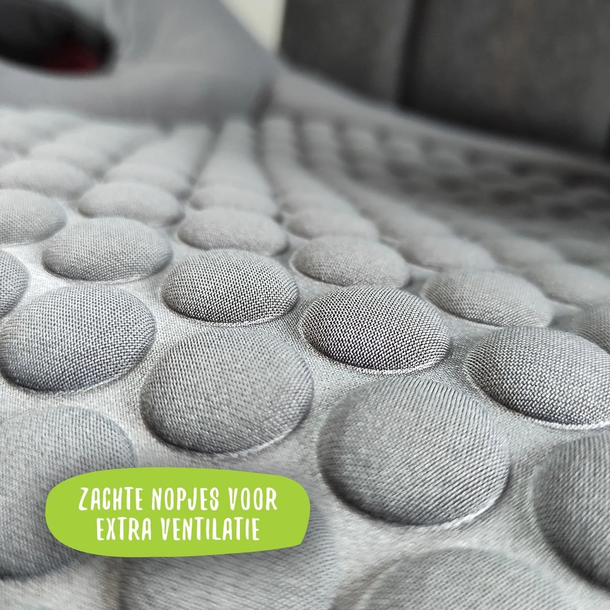 Het moderne ontwerp van de Kala booster met 3D-bekleding op het zitgedeelte biedt je kindje niet alleen een veilige, maar ook een comfortabele autorit. De 3D-kussens ontlasten de druk tijdens het zitten en zorgen voor een betere luchtcirculatie.