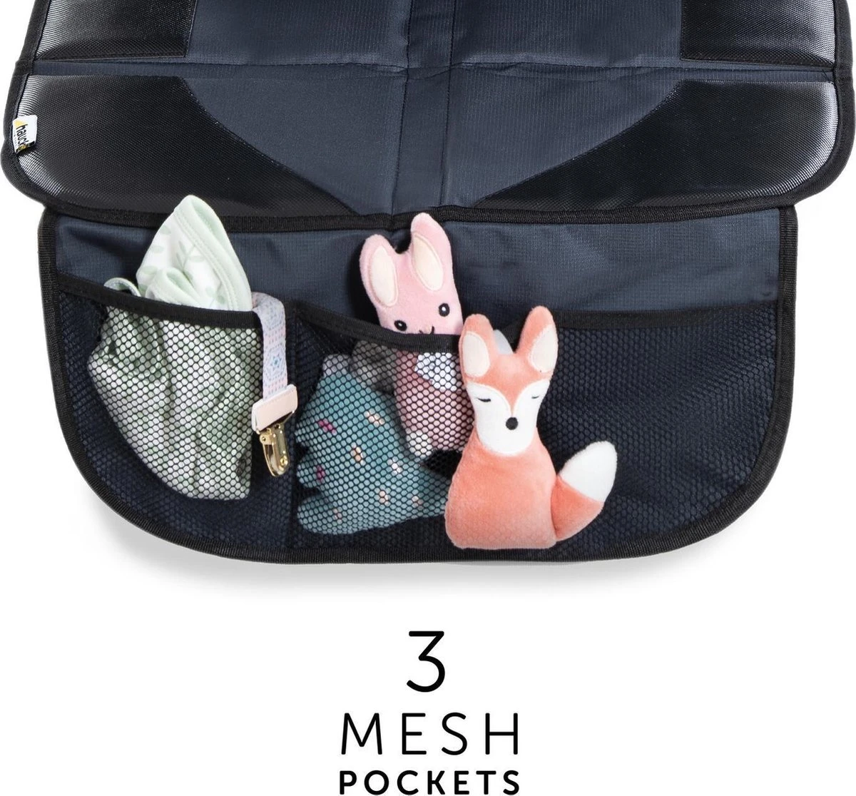 De perfecte bescherming voor de stoelbekleding van de auto tegen krassen en beschadigingen veroorzaakt door autostoeltjes. Deze universele onderlaag of mat is uiterst duurzaam. Dankzij de geรฏntegreerde uitsparingen voor de ISOFIX bevestigingen, deze onderlaag mat is geschikt voor alle autostoelen en (baby)autostoeltjes. Zowel de bovenkant en de onderkant zijn gemaakt van anti- slip materiaal en daarmee wordt voorkomen dat het autostoeltje beweegt tijdens het autorijden. Geรฏntegreerde zakken aan de voorkant bieden opbergruimte voor kleine voorwerpen. Waterbestendig en wasbaar.