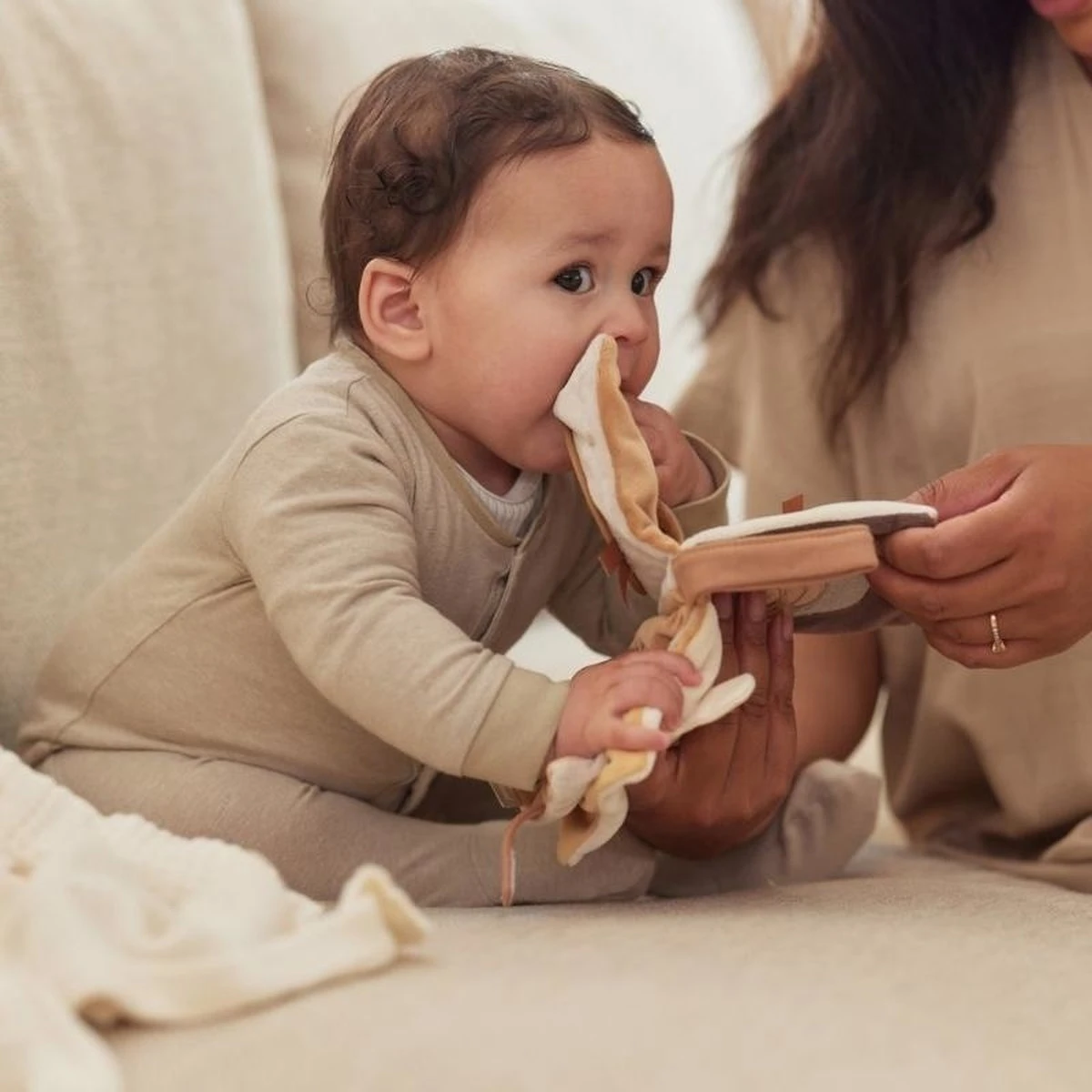 Dit leuke boekje zal zorgen voor uren vermaak van jouw kleintje. Dit zachte babyboekje is gemaakt van 100% polyester. Dus extra zacht voor jouw kleintje! Het boekje bevat allerlei schattige diertjes zoals een eendje, vlinder en een bijtje. Daarnaast bevat dit boekje allerlei elementen die de zintuigen van jouw kleintje prikkelen zoals: een baby spiegel, kleurrijke labeltjes en knisperende elementen. Bovendien ziet er een handig lusje met klittenband aan het boekje zodat je deze gemakkelijk kan bevestigen aan bijvoorbeeld de kinderwagen.