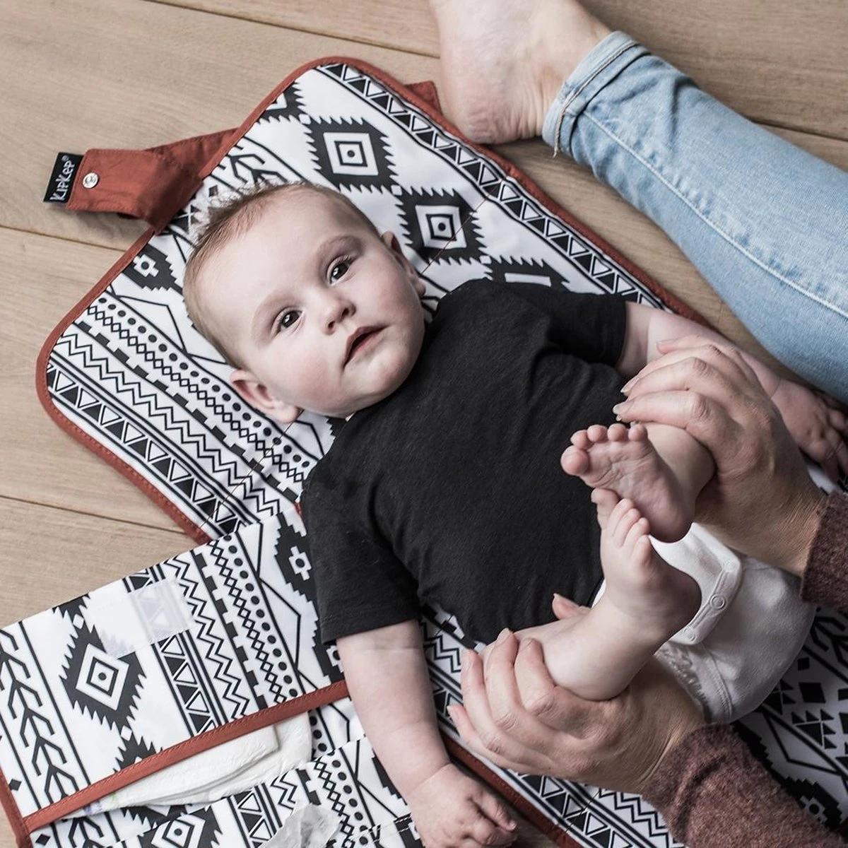 Na gebruik vouw je het Napper verschoonmatje op tot een compact pakketje, waar precies een Napper luier-etui in past (niet meegeleverd!). Riempje dicht, en in je tas. Zo heb je altijd alles bij de hand om je kindje snel en makkelijk te verschonen. Let maar op: de grote luiertas blijft steeds vaker thuis!