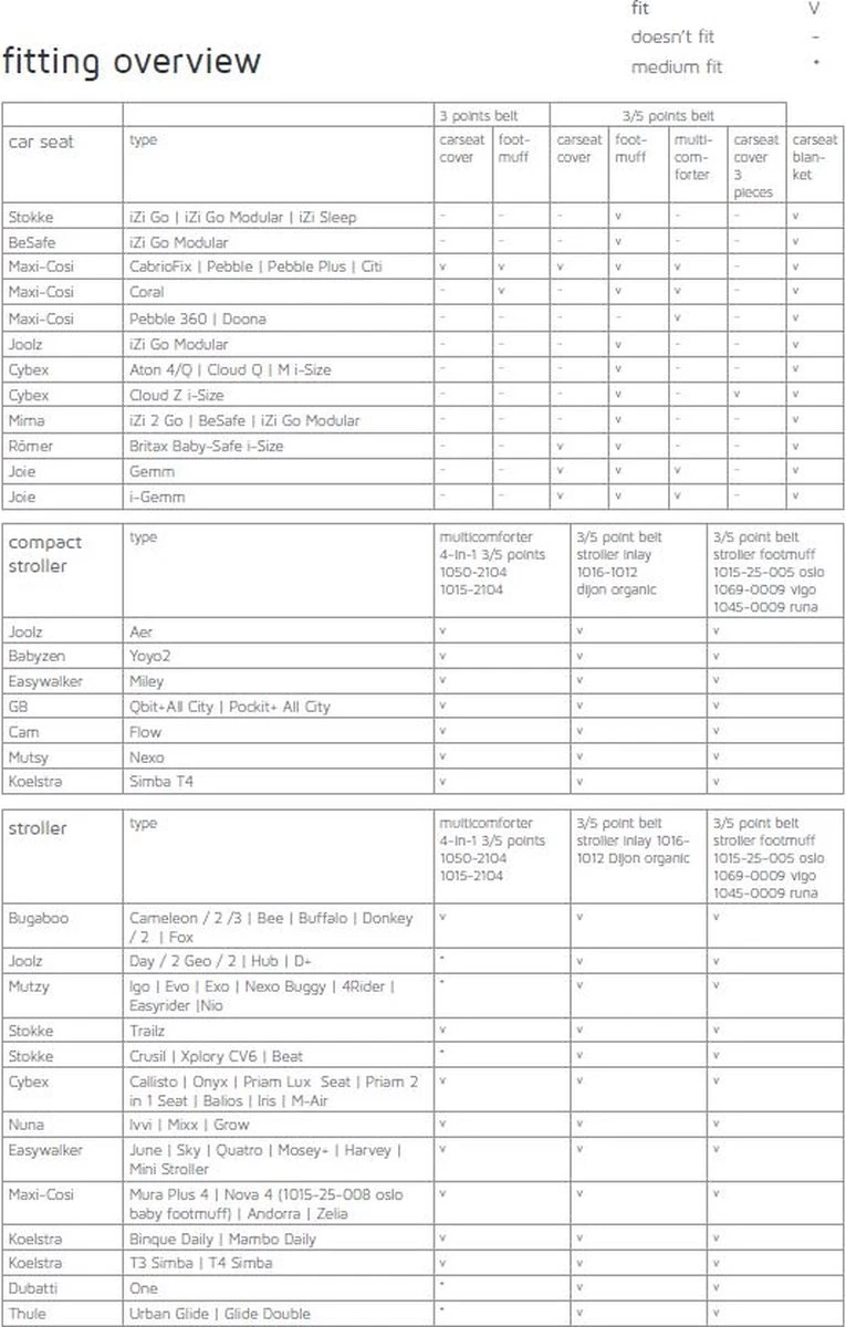 - Controleer onze โfitting overviewโ om te kijken of de voetenzak geschikt is voor jouw buggy
