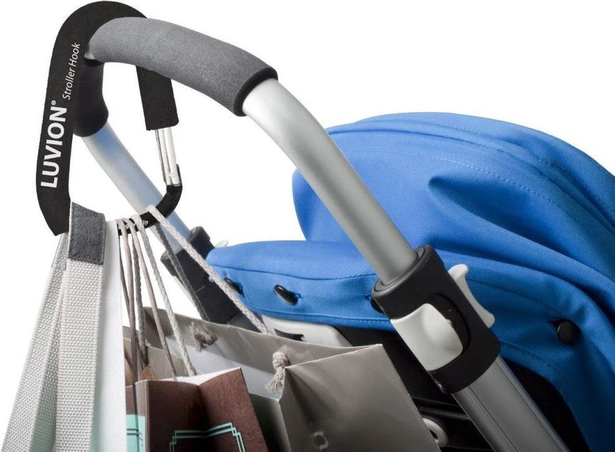 De super stevige aluminium Luvion Strollerhook (kinderwagen haak) is hรฉt perfecte product voor iedere ouder. Altijd een plek om je (extra) tas aan te hangen. Klik de robuuste Strollerhook aan de stang van je kinderwagen en hang er alle tassen aan. Het rubberschuim antislip laag zorgt ervoor dat de haak niet weg glijdt en mooi op zโn plek blijft.