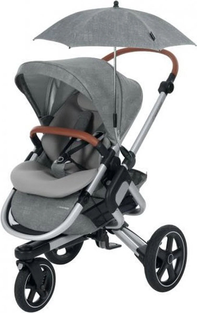 De Maxi-Cosi parasol is eenvoudig vast te klikken op alle Maxi-Cosi kinderwagens en kan op verschillende manieren worden afgesteld voor optimale bescherming tegen de zon (40+UV). De parasol kan gemakkelijk worden gepositioneerd om de gewenste hoeveelheid schaduw te bieden en wandelingen op warme, zonnige dagen aangenamer te maken voor de baby.