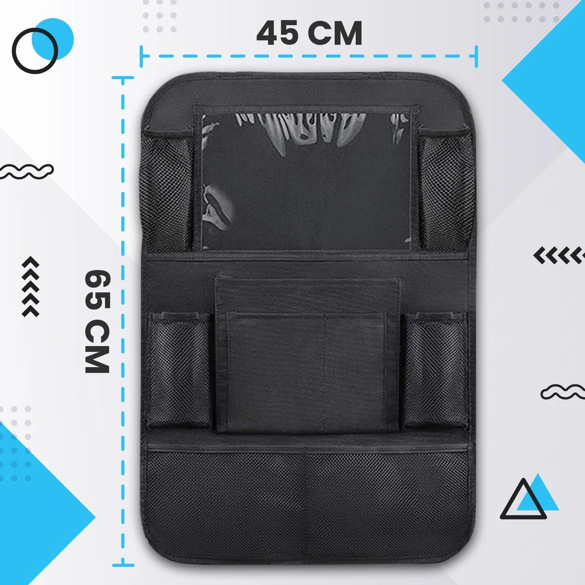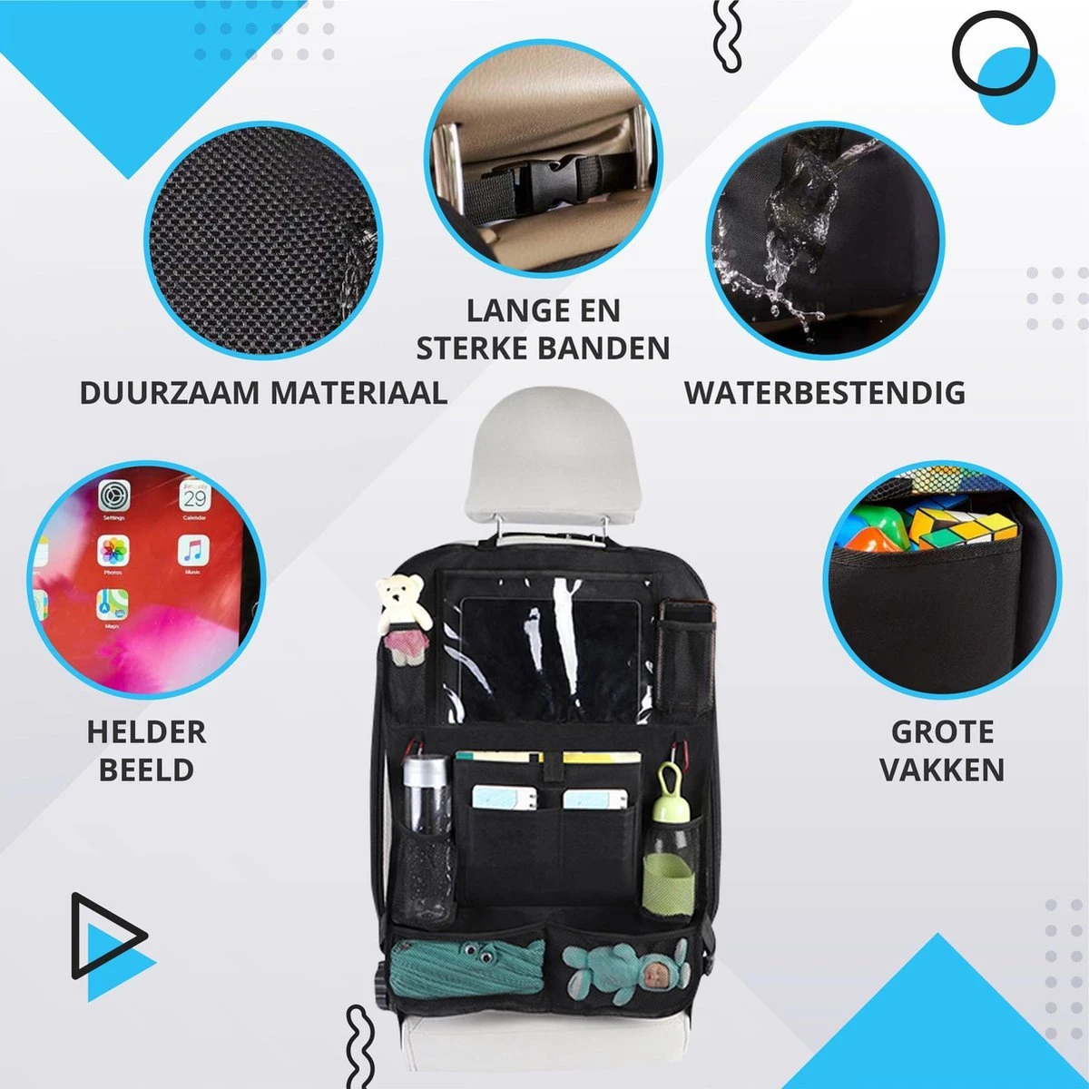 Je kent het vast wel: na een lange rit neem je een snelle blik achter in de auto en de gehele achterbank is een grote bende geworden! Met behulp van de autostoel organizer kan alles gemakkelijk opgeborgen worden en hoeft u zich geen zorgen te maken over bijvoorbeeld zwervend speelgoed door uw auto. De Auto Organizer beschikt over 9 vakken met een uniek venster die speciaal dient voor de tablet, zodat uw kind zich heerlijk kan vermaken onder het genot van een film of een spelletje. Ook zorgt de autostoel organizer ervoor dat alles gemakkelijk binnen handbereik is.