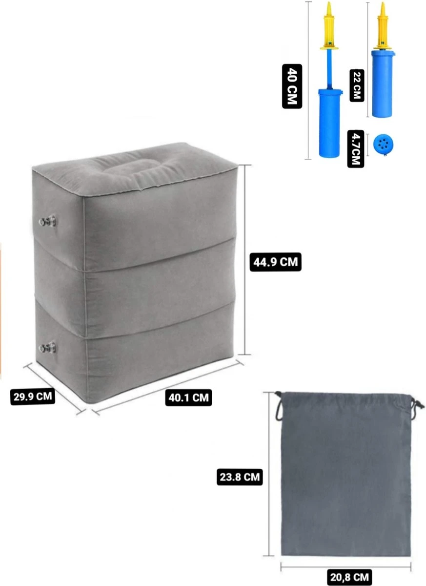 Dit opblaasbare kussen is onmisbaar als je op reis gaat met kleine kinderen. Doordat de kinderen in het voertuig kunnen slapen zullen zij minder vermoeid zijn. Maar ook voor jezelf biedt het in veel situaties extra comfort. Gebruik het als een voetensteun tijdens een lange zakenreis in de auto, trein of als vliegtuigkussen. Ook thuis of op kantoor biedt het voetkussen een aangename verlichting voor de benen en voeten.
