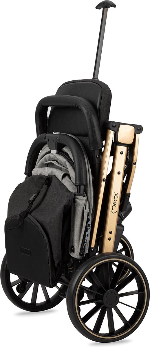 Zelfs na het opvouwen zal de MoMi ESTELLE DAKAR je verrassen door zijn praktische bruikbaarheid – de wandelwagen heeft een compact formaat en heeft een handvat voor het meetrekken van de opgevouwen kinderwagen. Net als een koffer!