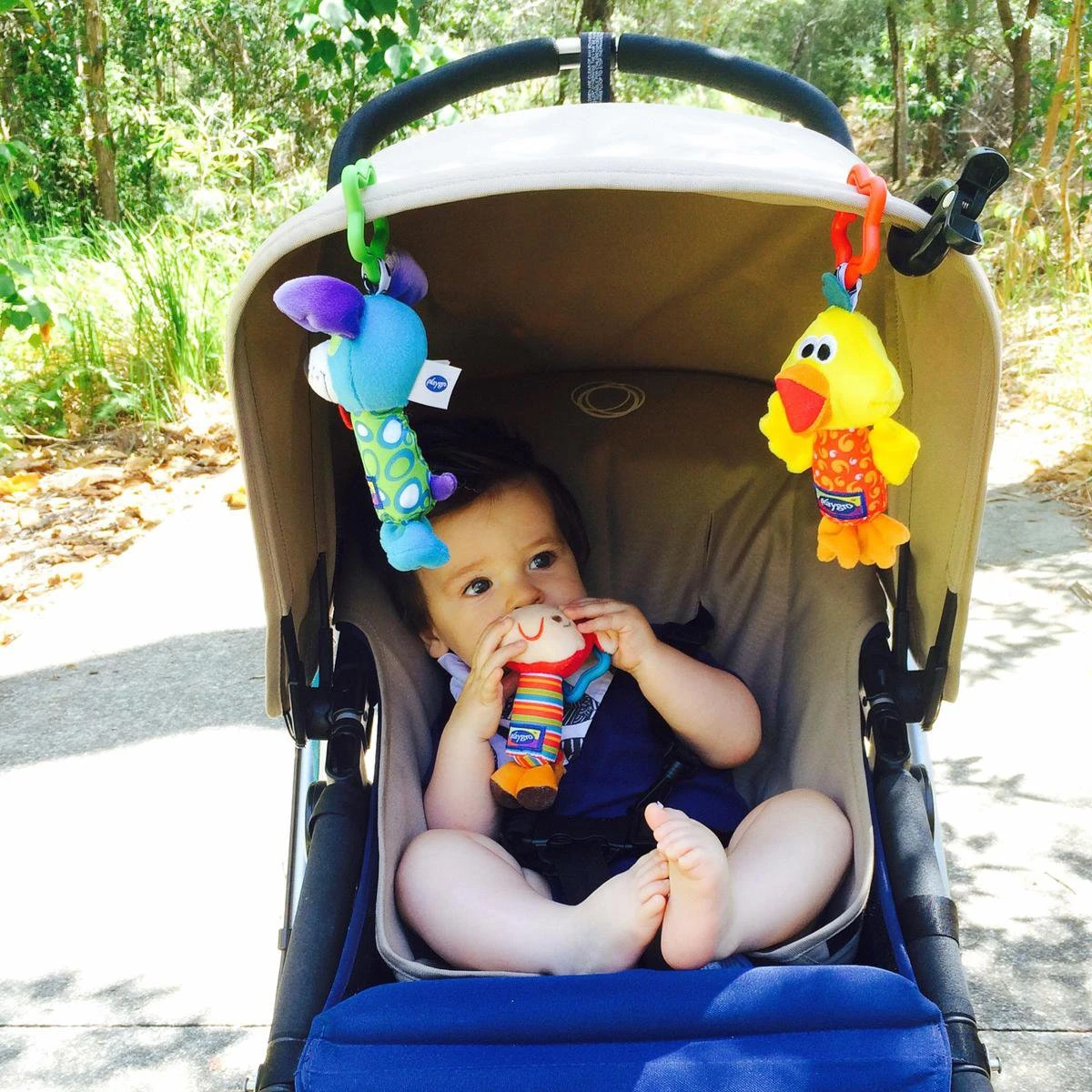 Maak kennis met dit rinkelende trio buggyspeeltjes. De vogel, koe en hond zijn ideaal voor de doorkomende tandjes, ze helpen met het kalmeren van pijnlijk tandvlees. De felle kleuren en bel-/rattel geluiden zullen uw kleintje onderweg zeker bezighouden! Deze drie vriendjes zijn eenvoudig te bevestigen aan kinderwagens, buggyโs, auto- of wipstoeltjes.