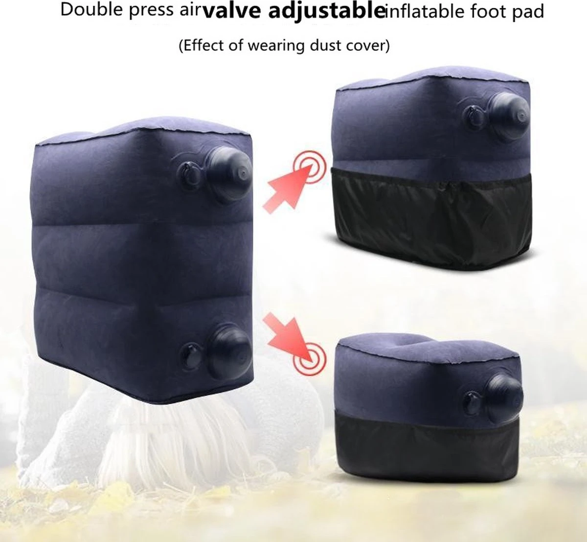 - Opblaasbaar lichtgewicht voetensteun. In 3 verschillende hoogten.