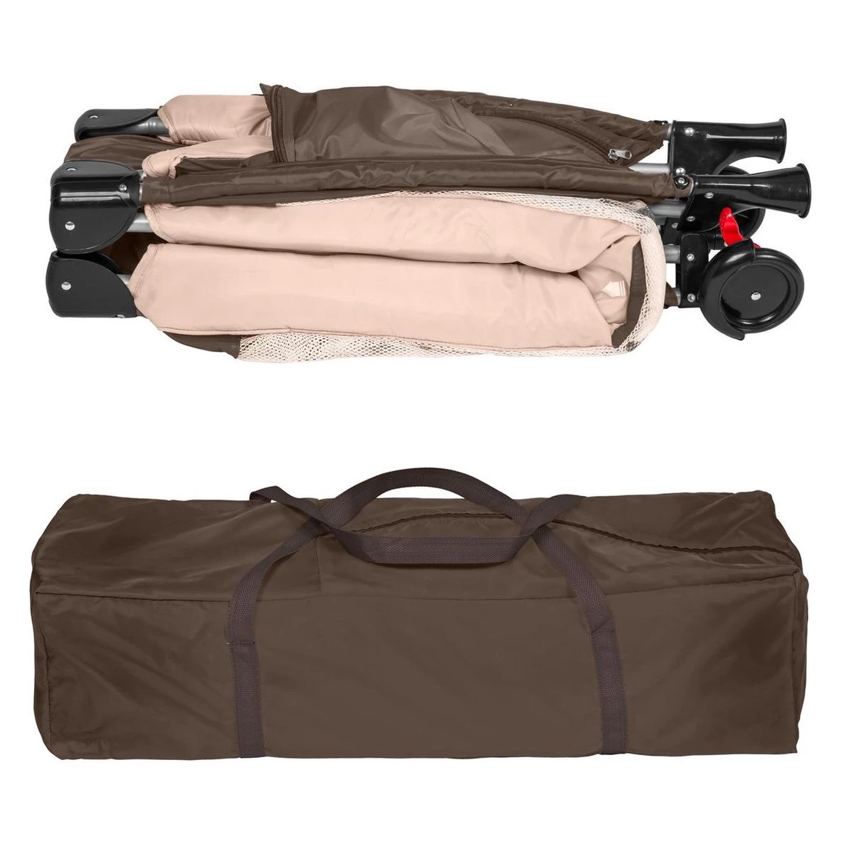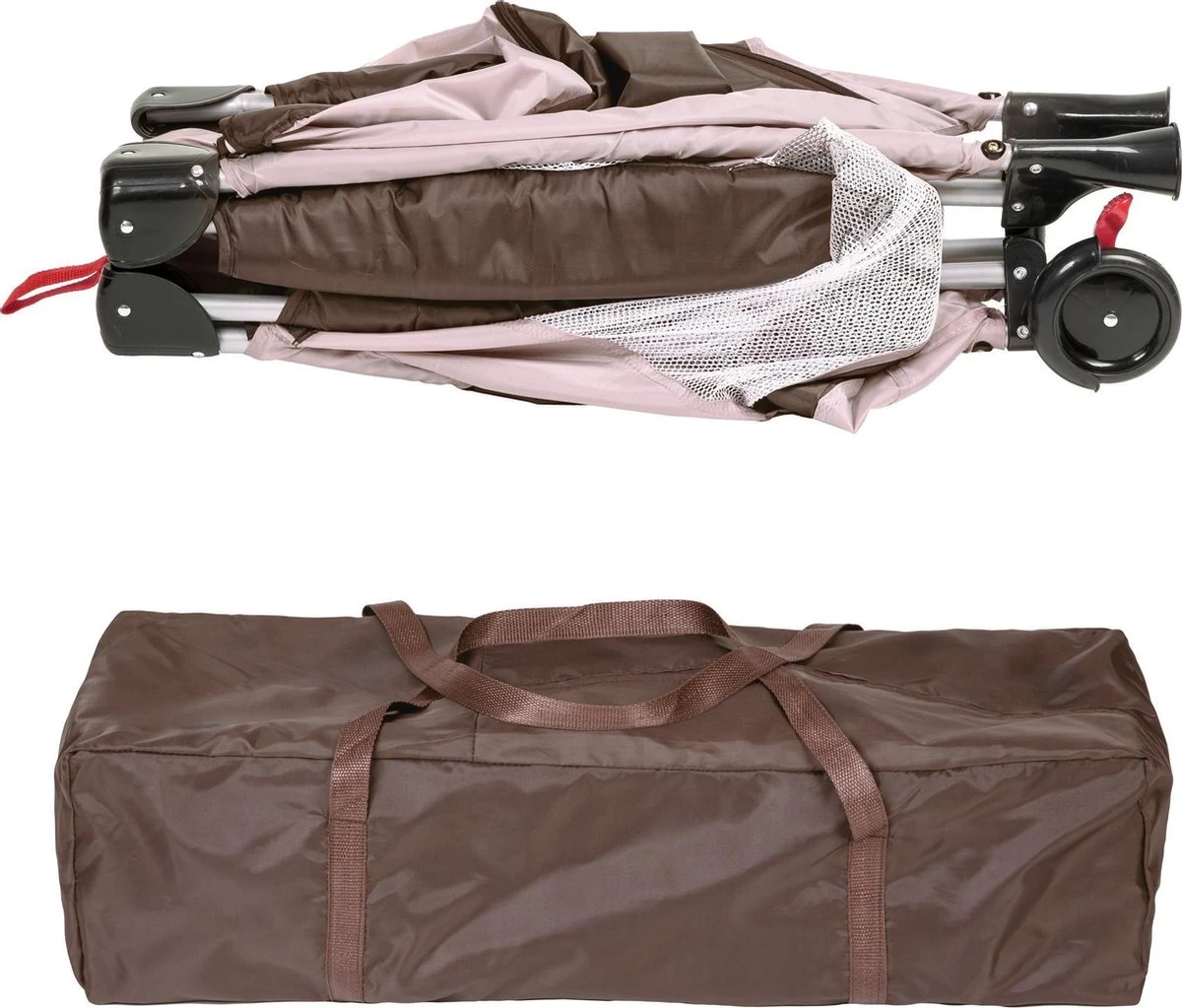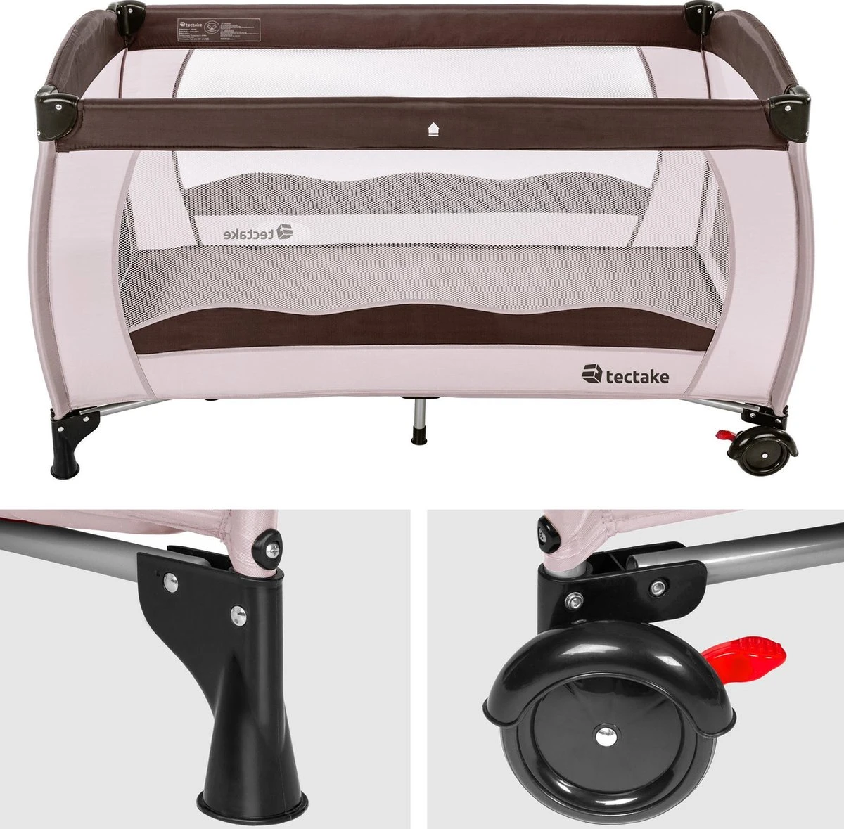 Het prachtige kinderreisbed is bijzonder praktisch voor een vakantie of een overnachting bij de grootouders. Het hoogwaardige en stabiele frame en het bijbehorende slaapvlak bieden uw kindje ook onderweg een knusse slaapplaats. Bovendien kan het praktische bed in een handomdraai gemonteerd en nagenoeg overal opgesteld worden. Door de zijdelen van ademend mesh-weefsel hebt u uw baby altijd in het oog. Als de nacht voorbij is kan het reisbed met behulp van de twee vergrendelbare zijdelingse wielen gemakkelijk aan de kant geplaatst worden. Praktisch: Dankzij de praktische transporttas is het kinderbed eenvoudig te transporteren. Zo moet uw kindje ook op reis zijn eigen bedje niet missen en kan het rustig slapen en dromen zodat het hele gezin โs morgens opnieuw klaar is voor nieuwe avonturen. Het babyreisbed is geschikt voor kinderen tot een leeftijd van 36 maanden. Bestel vandaag nog het praktische kinderreisbed van TecTake.