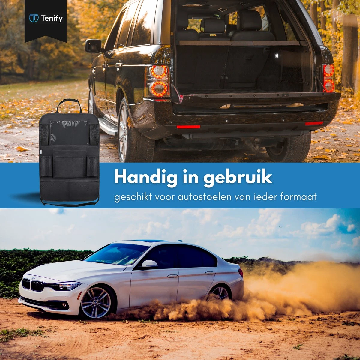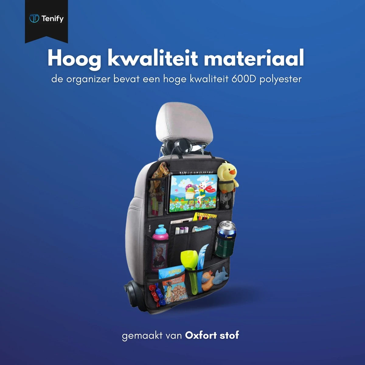 De organizer voorkomt een hoop rommel in de auto. Maar het bevat nog meer. Met deze Tenify organizer bescherm je de achterkant van de stoel en kunnen de kinderen met hun tablet/iPad (tot 10 inch) gemakkelijk hun gang gaan met de zekerheid dat de tablet/iPad niet beschadigd.