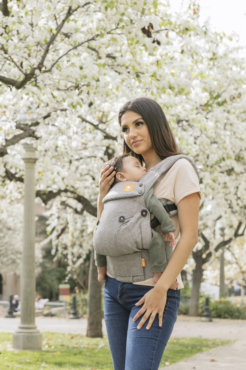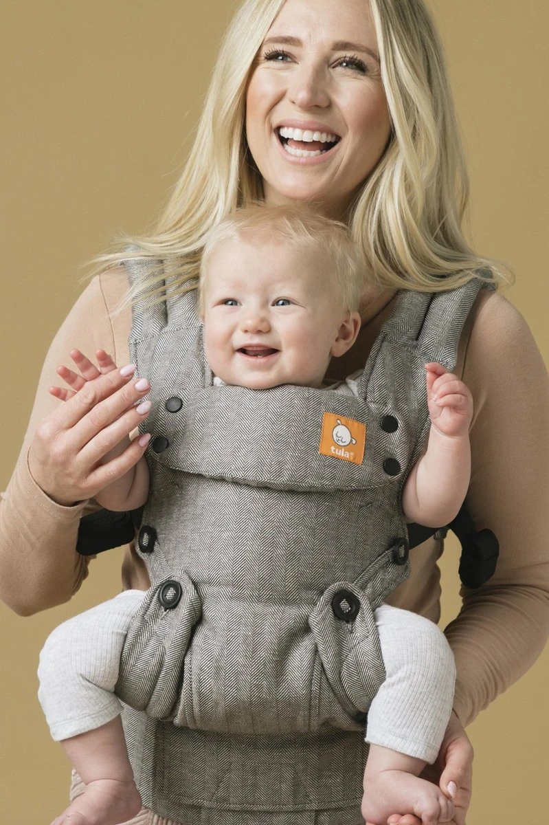 *Het dragen van je kindje met het gezichtje naar voren (face forward) is alleen aan te raden wanneer je kindje voldoende nekstabiliteit heeft en maximaal 15 minuten achter elkaar in een bekende omgeving om teveel prikkels tot een minimum te beperken.