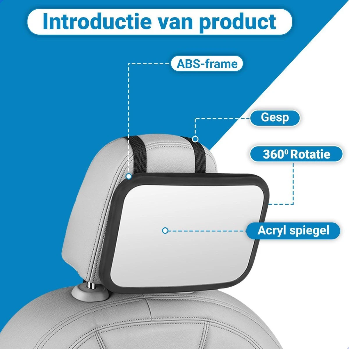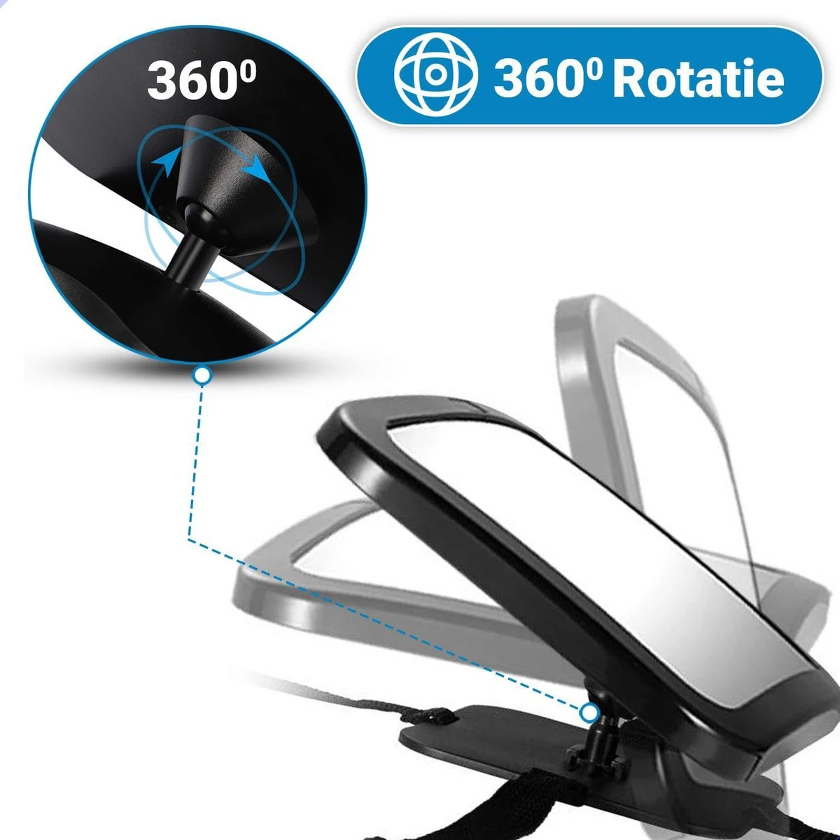 De Achterbank baby spiegel is 360ยฐ Verstelbaar en u kunt hem op elk gewenste positie instellen. De spiegel is namelijk aangesloten op een zwenkbare bevestiging van de rugleuning. Hiermee krijgt u de perfecte hoek om uw baby goed in de gaten kunnen houden zonder uw Auto achteruitkijkspiegel te bewegen.