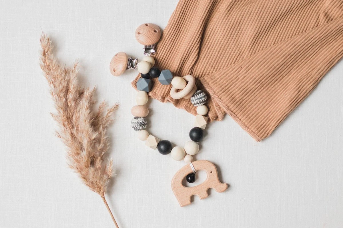 Een must-have baby accessoire van 2021! Met een wagenspanner van Complete Babyuitzet ga je met je baby stijlvol op pad. Deze sierlijke wagenspanner heeft een hip design met een leuke combinatie van silicionen, houten en gehaakte kralen.